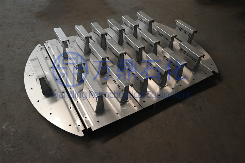 導(dǎo)向篩板是由美國(guó)聯(lián)合碳化物公司的林德子公司開(kāi)發(fā)的,又稱林德篩板,*早應(yīng)用于要求低壓降的空分裝置的精餾塔,1963年后開(kāi)始應(yīng)用于乙苯-苯乙烯等精餾裝置中。20世紀(jì)70年代有多家公司的120余臺(tái)減壓蒸餾塔釆用了林德篩板,其中超過(guò)5.0 m塔徑的就有45臺(tái),**的塔徑為11.5 m。林德篩板在普通篩板上有兩點(diǎn)重要改進(jìn):一是在液相的進(jìn)口區(qū)設(shè)置呈斜臺(tái)狀的鼓泡促進(jìn)器;二是在塔板上增設(shè)了百葉窗導(dǎo)向孔。這種改進(jìn)增大了**鼓泡面積,使塔板操作由鼓泡型變?yōu)閲娚湫停诮档鸵好嫣荻鹊耐瑫r(shí)使氣體分布均勻,從而使干板壓降減小、霧沫夾帶減少、傳質(zhì)效率提高。